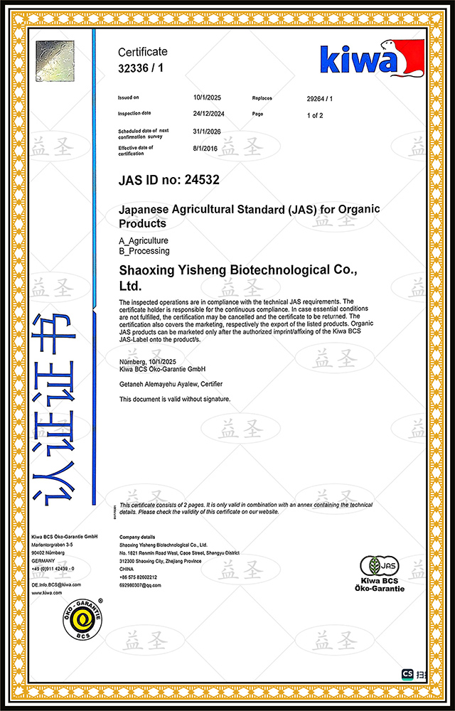 (JAS Organic certificate