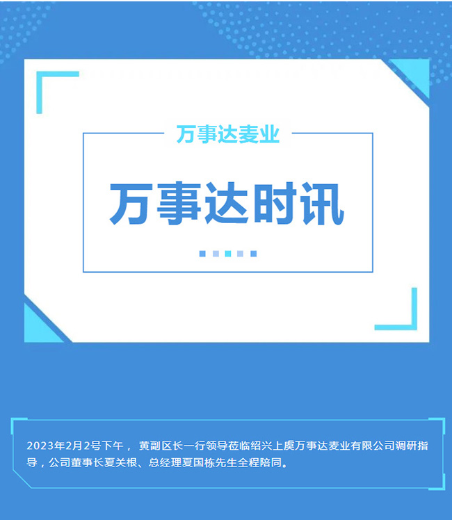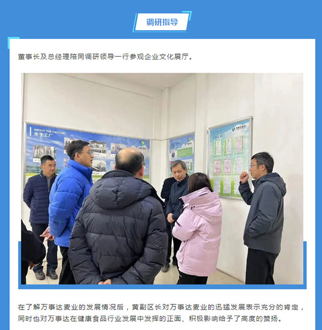 萬事達(dá) · 時訊 ┃ 黃副區(qū)長帶隊蒞臨萬事達(dá)麥業(yè)考察指導(dǎo)生產(chǎn)工作。